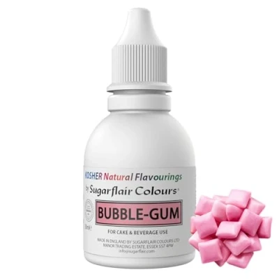 Bubblegum Natural Flavouring - Sugarflair Natural Food Flavouring is a fun and easy way to enhance your cakes and bakes. Perfect for adding to cakes, ice creams, chocolates, icings, drinks and more. Highly concentrated flavouring - This concentrated natural bubble gum flavouring will give your bakes a delightful flavour in just a few drops, which is great for saving time when flavouring your holiday cakes, cookies, desserts and more. It is recommended to start with 1ml of flavouring per 1kg of cake/cookie mix/chocolate and adjust to taste. Natural Flavours - Sugarflair flavours are concentrated natural flavour extracts to give you the essence of your favourite fruits such as raspberries and oranges and the intensity of sweet and tangy extract such as lemon and vanilla. Easy to use - The bubblegum flavouring comes in a handy squeeze bottle with a dropper top meaning you can get the exact amount that you require and you don’t have to buy a separate dropper. Natural Bubblegum Flavouring for Baking, Cakes, Ice Creams, Chocolates, Icings and More! Pack Your Bakes With A Delicious Natural Food Flavour Extract. Nut Free, Gluten Free, GM Free, Kosher. Suitable for Vegetarians and Vegans
