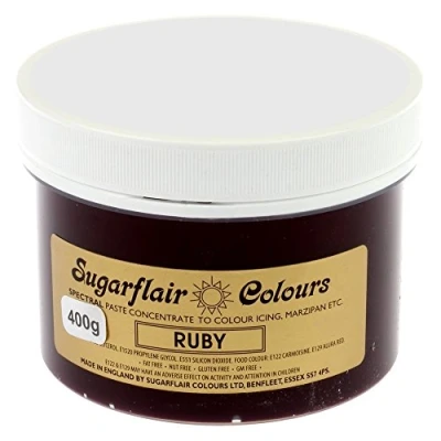 Sugarflair Bulk 400 gram Concentrated Food Colour Paste Gel Cake Decorating. Red Green Yellow Pink Blue Black (Ruby Red)