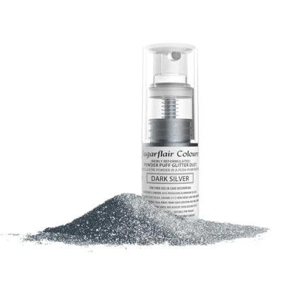 Sugarflair Dark Silver Edible Glitter Dust Spray (Non Aerosol) Add a Shimmering Sparkle to Cakes, Cupcakes, Chocolate, Baking, Desserts, Ice Cream, Drinks, Cocktails and more 10g