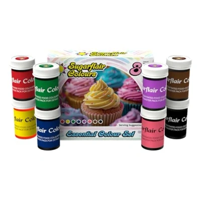 Sugarflair Essentials Food Colouring Paste Set, Highly Concentrated for Buttercream, Sugar Paste, Royal Icing, Cake Mixes and More! Vibrant Colour Dye 8x 25g