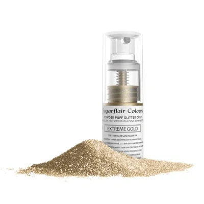 Sugarflair Extreme Gold Edible Glitter Dust Spray (Non Aerosol) Add a Shimmering Sparkle to Cakes, Cupcakes, Chocolate, Baking, Desserts, Ice Cream, Drinks, Cocktails and more 10g