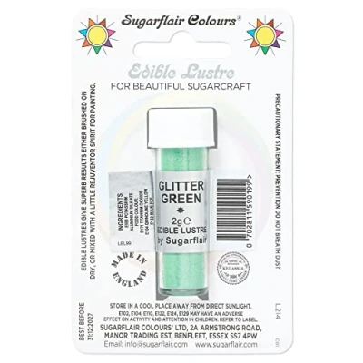 Sugarflair Glitter Green Edible Lustre Dust, Add a Lustrous Shine to Cakes or Decorations. Brush On Rejuvenator Create Eye Catching Paint, Gives Your Bakes 2g