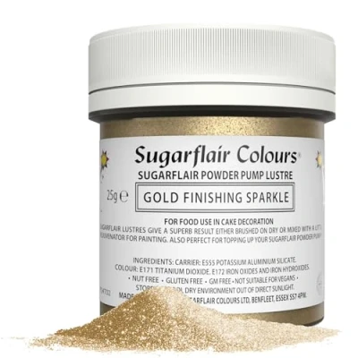 Sugarflair Gold Finishing Sparkle Edible Glitter Dust Powder Pump Refill Tub Food Colouring Powder, Colour Dust, Brush On, Spray, or Create Eye Catching Paint Effect 25g