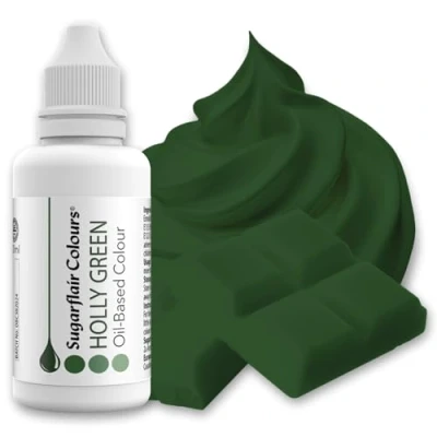 Sugarflair Holly Green Oil Based Food Colouring, Highly Concentrated Edible Blue Colour for Consistent Colouring of High Fat Foods: Icing, Buttercream, Chocolate & More 30ml