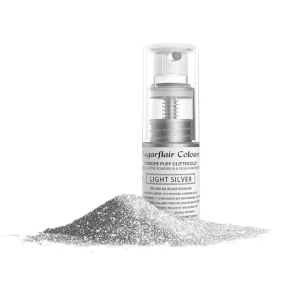 Sugarflair Light Silver Edible Glitter Dust Spray (Non Aerosol) Add a Shimmering Sparkle to Cakes, Cupcakes, Chocolate, Baking, Desserts, Ice Cream, Drinks, Cocktails and more 10g