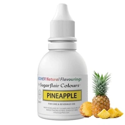 Pineapple Natural Flavouring - Sugarflair Natural Food Flavouring is a fun and easy way to enhance your cakes and bakes. Perfect for adding to cakes, ice creams, chocolates, icings, drinks and more. Highly concentrated flavouring - This concentrated natural pineapple flavouring will give your bakes a delightful flavour in just a few drops, which is great for saving time when flavouring your holiday cakes, cookies, desserts and more. It is recommended to start with 1ml of flavouring per 1kg of cake/cookie mix/chocolate and adjust to taste. Natural Flavours - Sugarflair flavours are concentrated natural flavour extracts to give you the essence of your favourite fruits such as raspberries and oranges and the intensity of sweet and tangy extract such as lemon and vanilla. Easy to use - The pineapple flavouring comes in a handy squeeze bottle with a dropper top meaning you can get the exact amount that you require and you don’t have to buy a separate dropper. Natural Pineapple Flavouring for Baking, Cakes, Ice Creams, Chocolates, Icings and More! Pack Your Bakes With A Delicious Natural Food Flavour Extract. Nut Free, Gluten Free, GM Free, Kosher. Suitable for Vegetarians and Vegans