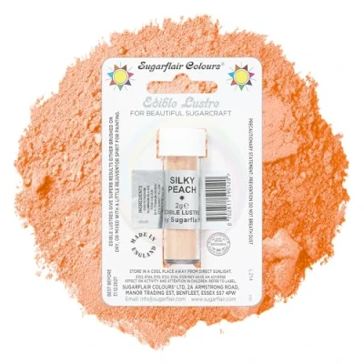Sugarflair Silky Peach Edible Lustre Dust is versatile and can either be brushed onto cakes and decorations or mixed with rejuvenator spirit to create an eye-catching edible paint for sparkling cakes or glamorous sugar cake decorations. Gleaming Lustre Dust to Transform your Cakes, Bakes and Decorations - Use these high-quality edible dusting powders for adding lustrous shine to your bakes. Available in an Extensive Range of over 40 Unique Glistening Colours. 100% Edible Lustre Powder Food Colouring - All products in the Sugarflair Lustre Dust collection are completely edible and leave a shimmering lustrous shine on cakes and decorations Sugarflair Colours Edible Lustre Dust range has a lustrous colour to match any cake theme or occasion. Each powder comes in a space-saving vial with a screw-on cap to keep your dust fresh, ready to use and easy to store. Nut Free, Gluten Free, GM Free, Kosher. Suitable for Vegetarians and Vegans