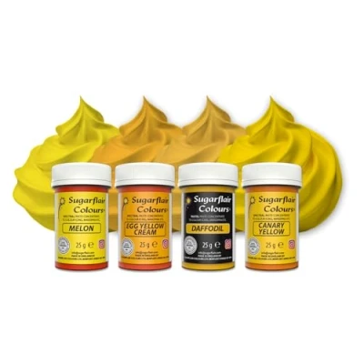 Sugarflair Yellow Food Colouring Paste Set Highly Concentrated for Use with Sugarpaste, Modelling Pastes, Fondant, Buttercream, Royal Icing, Cake Mixes and more Multipack 4x 25g