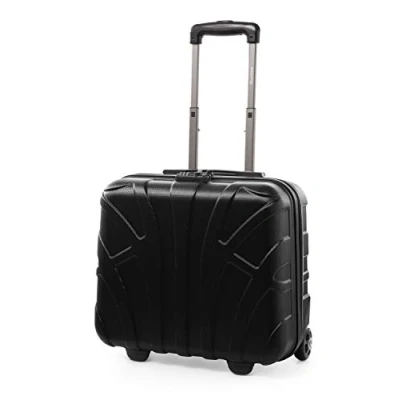 BUSINESS PARTNER: Compact pilot case (38 x 42 x 22 cm incl. wheels and handles) for all airlines. Very light at 2.5 kg and extremely generous with a volume of 29 liters. The perfect trolley for the next business meeting, for a comfortable and stress-free trip. COMFORTABLE TRANSPORT: Retractable telescopic handle, adjustable on three steps (28/33/39 cm). 2 rubberized wheels, very silent and stable. 2 elastic straps for attaching the trolley to any telescopic handle. ROBUST HARD CASE: Matt surface of 100% ABS, particularly light, absolutely stable, insensitive to impact and shatterproof. CLEVER INTERIOR: 4 large, lined compartments for tablet, laptop (up to 15”) or important business documents. A cross belt fixes the belongings. Various pockets for travel documents, pens, etc. MUST HAVE: Integrated TSA combination lock protects personal items against unauthorized access. The lock meets the highest security standards for luggage and is easy to use.