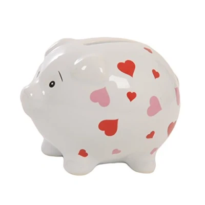 Suki Heart Small Piggy Bank Fun Heart design Ceramic piggy bank 3 ¾ x 2 ¾ x 3” (9.5 x 7 x 7.6 cm) approx dimensions Individually gift boxed