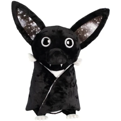 Meet Ghost, the cuddly and friendly galaxy bat. This fun jumbo black and white, soft boa plush cuddly toy bat comes complete with sparkly eyes and stripy belly that glow in the dark and recharge with sunlight. Keep Ghost the Galaxy Bat cosy by fastening their star covered, galaxy wings around their body with the Velcro tab or leave them open to show off their cosmic side! Available in other sizes and characters, Manufacturer: Suki Gifts International Ltd