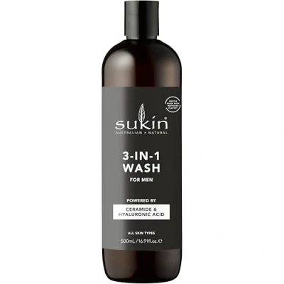 Sukin Men's 3 in 1 Wash Hydrates Face, Hair and Body Infused with Ceramides, Hyaluronic Acid More Natural Hair, Face 500ml