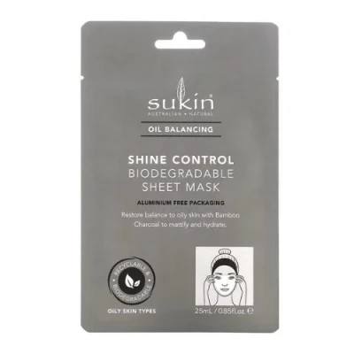 Transform your skin with Sukin Oil Balancing Shine Control Sheet Mask! This face mask features Bamboo Charcoal to combat oiliness and minimize shine, leaving your T-Zone under control. Achieve a balanced, radiant complexion with this powerful, natural solution.. 1 x Sukin Oil Balancing Shine Control Sheet Mask 25ml. Biodegradable. Aluminium free packaging. Restores balance to oily skin with bamboo and charcoal. Mattifies and hydrates
