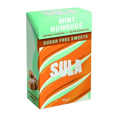 SUGAR FREE: Sula Mint Humbugs are delicious boiled sugar free sweets and use a sweetener as an alternative; great sweets in a handy flip top box that are a perfect snack for anytime of the day DIABETIC-FRIENDLY: These sugar-free boiled sweets are a perfect alternative for those looking to enjoy a delightful, healthier option suitable for diabetics MULTIPACK: Stock up with this pack of 14 sugarless sweets, naturally flavoured and perfect for long-lasting, fruity enjoyment FREE FROM: Made with natural ingredients that are free from artificial flavours, artificial colours, hydrogenated fats, aspartame, acesulfame and preservatives TRY THEM ALL: Sula Boiled Sweets come in a range of flavours to appeal to all tastes - try them all: Butterscotch, Strawberry and Cream, Mixed Fruit, Mint Humbugs, Rhubarb and Custard, Liquorice, and Pear