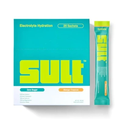 SULT Electrolyte Hydration Powder, Sugar Free Supplement with 6 Essential Electrolytes, Daily Support for Energy and Focus (Mango Tropical)