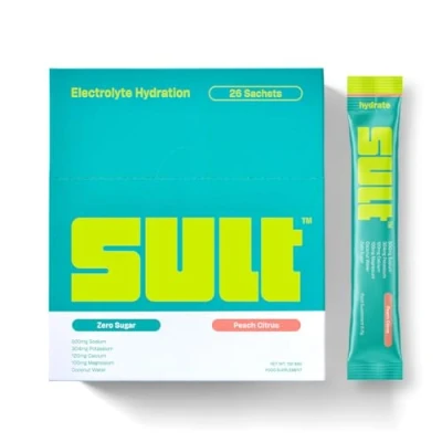 SULT Electrolyte Hydration Powder, Sugar Free Supplement with 6 Essential Electrolytes, Daily Support for Energy and Focus (Peach Citrus)