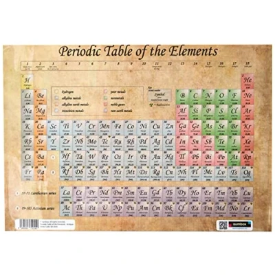 Antique Style Periodic Table Of The Elements Each element has it's atomic number, symbol, name and standard atomic weight Lanthanum and Actinium series are labelled Aids learning process Includes Latest 2025 Elements!
