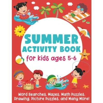 Summer Activity Book For Kids Ages 5 6: Word Searches, Mazes, Math Puzzles, Drawing, Picture and Many More!