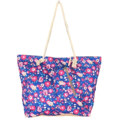 SUN & SURF Large Beach Bag for Women with Zip 60 x 40 20 cm Summer Shoulder Rope Handles Inside Pockets, Flowers, XL, Floral