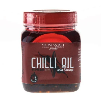 SUN WAH Chilli Oil 180g is an authentic Asian condiment made with dried chilies, shrimp paste, and garlic for a rich, spicy flavor. Perfect for stir-fries, dipping, or seasoning, it adds savory depth to any dish and showcases visible quality ingredients.