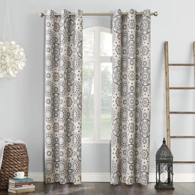 Sun Zero 53672 Nepal Global Medallion Print Blackout Grommet Curtain Panel, Linen, 40" x 63"