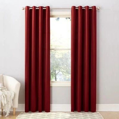 Sun Zero Barrow 2 Pack Energy Efficient Grommet Curtain Panel Pair, 54" x 84", Brick