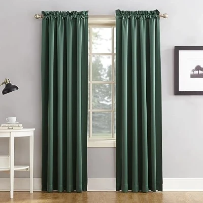 Sun Zero Barrow 2 Pack Energy Saving Rod Pocket Curtain Panel Pair, 54" x 84", Everglade