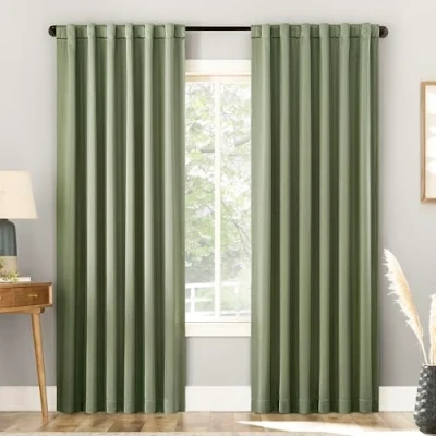 Sun Zero Belize 2 Pack Magnetic Closure Pleated Look Theater Grade 100% Blackout Back Tab Curtain Panel Pair, 52" x 96", Sage Green
