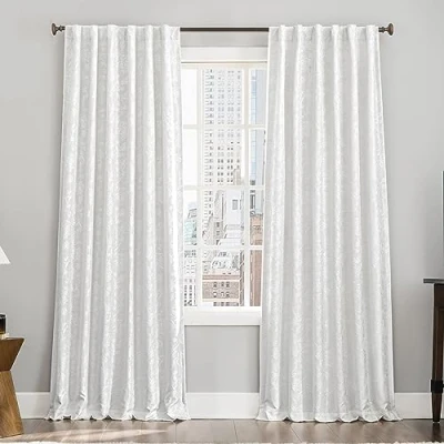 Intricately embroidered floral pattern adds intrigue Extreme Thermal Blackout technology blocks out 100% of outside light Thermal properties help keep summer heat and winter chill out of your home Noise reduction up to 40% helps you get a sounder, more uninterrupted sleep Hidden back tabs fit curtain rods up to 1.5" in diameter Pair includes two (2) panels. Measure carefully prior to purchase.