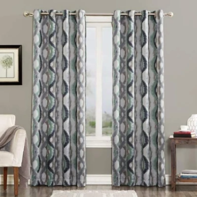 Watercolor ogee design adds intrigue Room Darkening technology blocks out some unwanted light while enhancing privacy Energy efficient design reduces energy lost through your windows by up to 25% Thermal properties help keep summer heat and winter chill out of your home Noise reduction up to 25% helps you get a sounder, more uninterrupted sleep.Built-in metal grommets fit curtain rods up to 1.5" in diameter