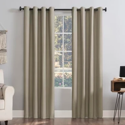 Sun Zero Columbia 2 Pack Thermal Energy Saving 100% Blackout Grommet Curtain Panel Pair, 50" x 95", Stone