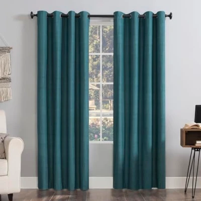 Sun Zero Columbia Pair of Thermal Insulated Energy Saving Eyelet Curtains 100% Blackout 50" x 95" (127 241 cm) Teal