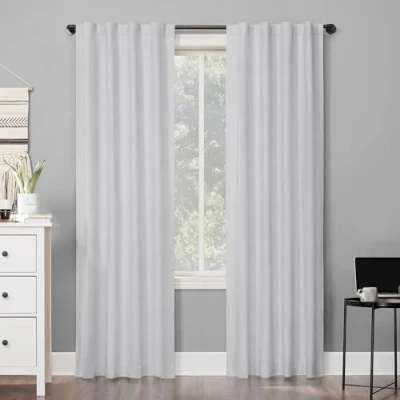 Sun Zero Cyrus 2 Pack Thermal Total Blackout Back Tab Curtain Panel Pair, 40" x 84", White