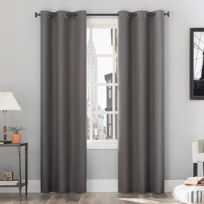 Sun Zero Cyrus Thermal 100% Blackout Grommet Curtain Panel Pair,40" x 63", Gray