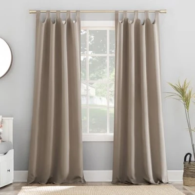 Blackout technology blocks out most unwanted light while enhancing privacy Energy efficient design reduces energy lost through your windows by up to 40% Thermal properties help keep summer heat and winter chill out of your home Noise reduction up to 30% helps you get a sounder, more uninterrupted sleep Tab top design allows for easy hanging on curtain rods up to 1.5" in diameter.Each panel sold separately