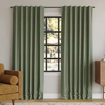 Elegant faux dupioni silk fabric with a raw slub texture imparts opulent radiance Extreme Blackout Thermal Lining blocks out 100% of outside light Energy Efficient design reduces energy lost through your windows by up to 40% Thermal properties help keep summer heat and winter chill out of your home Noise reduction by up to 30% helps you get a sounder, more uninterrupted sleep.Back tabs fit curtain rods up to 1.5" in diameter
