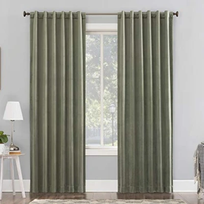 Sun Zero Hampshire Velvet Noise Reducing Thermal Extreme 100% Blackout Back Tab Curtain Panel, 50" x 84", Moss Green
