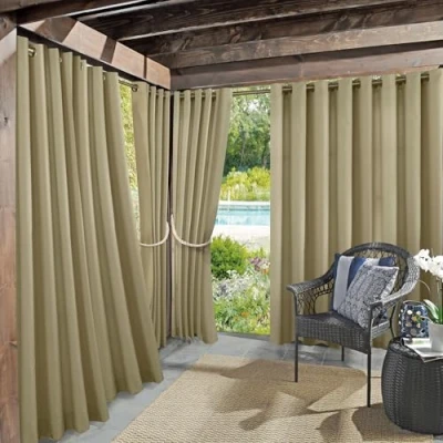 Fade resistant durable indoor/outdoor fabric Offers light blocking with UPF 50+ UV Protection Stain and water resistant lightweight material Ideal for outdoor pergolas and gazebos Rust-proof grommets fit curtain rods up to 1.5" in diameter Each panel sold separately