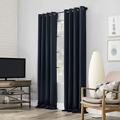 Sun Zero Nordic 2 pack Theater Grade Extreme 100% Blackout Grommet Curtain Panel Pair, 52" x 63", Navy Blue