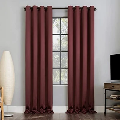 Sun Zero Nordic 2 pack Theater Grade Extreme 100% Blackout Grommet Curtain Panel Pair, 52" x 84", Wine