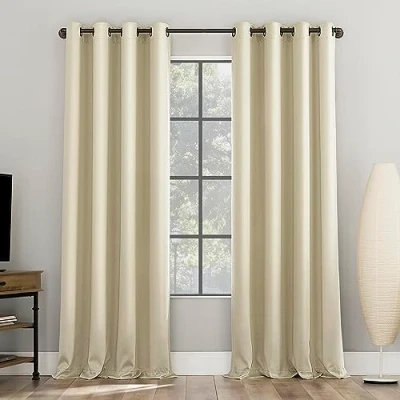 Sun Zero Nordic 2 Pack Theater Grade Noise Reducing Extreme 100% Blackout Grommet Curtain Panel Pair, 52" x 96", Cream