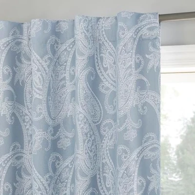 Sun Zero Pedra Paisley Embroidery 100% Blackout Back Tab Curtain Panel, 40" x 84", Tranquil Blue