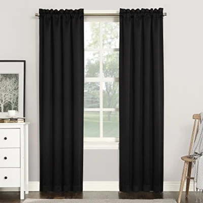 Sun Zero Rod Pocket Blackout Window Panel, Black, 40" x 84"