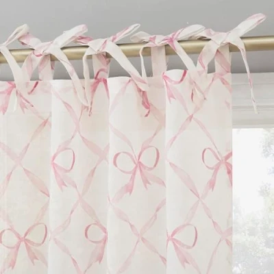 Sun Zero Romy Generation Lattice Bows Sheer Tie Top Curtain Panel, 50" x 84", Pink