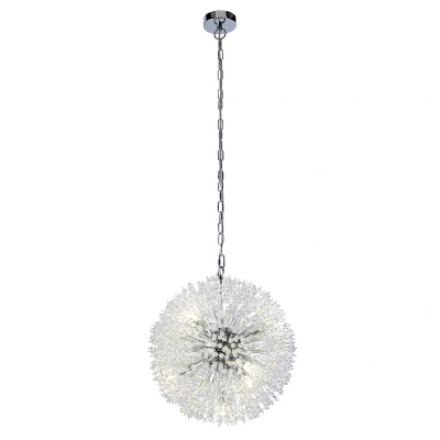 Sunburst 7 Light Pendant Chrome, Glass Beads