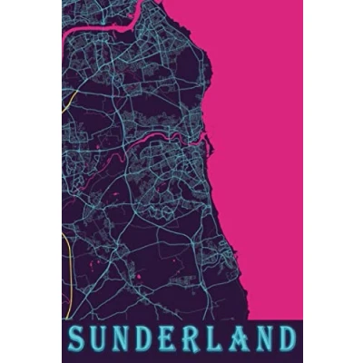 Sunderland: 6x9 Lined Journal Memory Book Travel Diary To Record Your Thoughts Graduation Gift Teacher Gifts Neon Map For People Who Love Sunderland United Kingdom