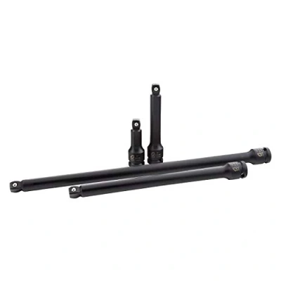 SUNEX Tools 2504, 1/2 Inch Drive Impact Extension Set, 4 Piece, SAE, 3 15 Inch, Cr Mo Steel, Radius Corner Design, Wobble Drive, Steel Ball Retainer, Dual Size Markings, with Storage Tray