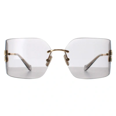 Miu Miu Rimless Womens Gold Light Grey MU54YS Sunglasses feature a bold, rimless frame that exudes confidence and sophistication, crafted from high-quality metal for a luxurious feel. The lenses provide superior UV protection while adding a touch of glamour, perfect for any fashion-forward individual. With distinctive detailing and the iconic Miu Miu logo subtly etched on the temples, the MU54YS sunglasses are a must-have accessory for those who dare to make a statement. Step into the spotlight and let your style shine with Miu Miu.