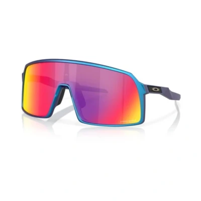 Sunglasses Oakley OO9406 Sutro, they stand out for their bold mask frame in O_Matter, designed for those who love a futuristic look. The blue color and purple lenses give an innovative and distinctive aspect. Recommended for oval and rectangular faces, to balance the longer and more defined sections. Ideal for men.
