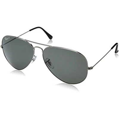 Ray-Ban Sunglasses Aviator 3025 Gunmetal Green Polarized 004/58 were originally designed in 1936 for US military pilots and have since become one of the most iconic sunglasses models in the world. The timeless design is characterised by the thin metal wire frame, large teardrop shaped lenses and fine metal temples that feature silicone tips and nose pads for a customised and comfortable fit. This classic model is available in various sizes and an array of colourways.